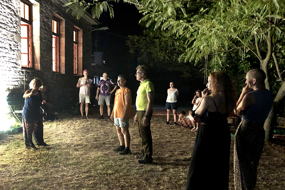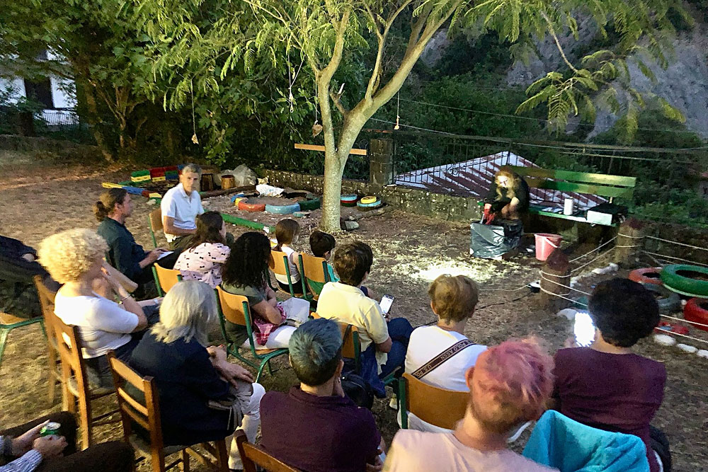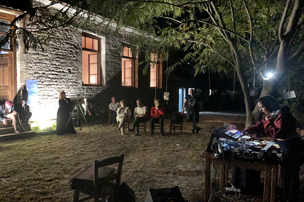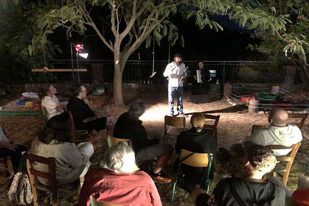 [Αρ] Nefeli Stam, “Train Poetry” performance [Δεξ] Παραδοσιακοί Μουσικοί από τα Τζουμέρκα: Γιάννης Κουσιουνέλος, Ρούλα Αντωνίου