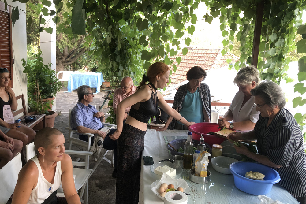 [Αρ] Ομαδική φωτογραφία, γαστρονομικό εργαστήρι [Δεξ] Ομαδική φωτογραφία με την κοινότητα της Κυψέλης